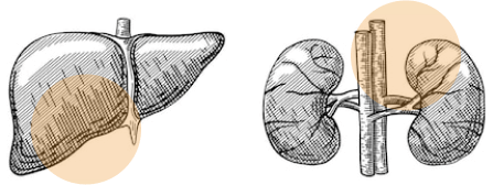 Цирроз печени, геппатит А и Б, почечная недостаточность, пиелонефрит