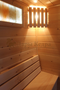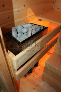 Это специально оборудованная готовая деревянная кабина для сухого и влажного парения. Электропечь нагревает пространство внутри и позволяет сбрызгивать камни водой, слегка увлажняя воздух. Такая процедура позволяет избежать перегрева. Сауна обшита снаружи и внутри вагонкой из липы и имеет теплоизоляционный слой. Финская сауна с электропечью подойдет, как для домашнего использования, так и для коммерции. Доставляется в разборном виде щитами, собирается по инструкции с помощью шуруповёрта.